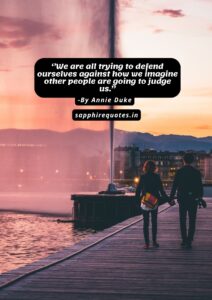 29) ”We are all trying to defend ourselves against how we imagine other people are going to judge us.”
