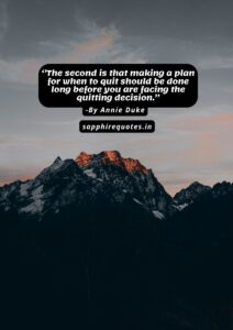 16) ”The second is that making a plan for when to quit should be done long before you are facing the quitting decision.”