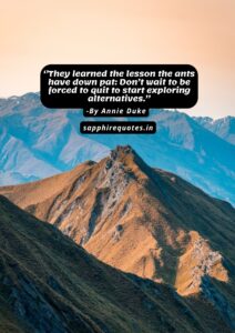 21) ”Quit and grit are two sides of the exact same decision. Decision-making in the real world requires action without complete information. Quitting is the tool that allows us to react to new information that is revealed after we make a decision.”