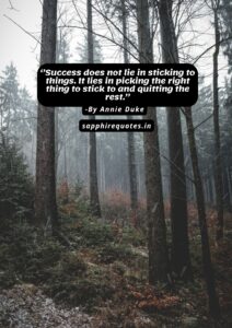 03) ”Success does not lie in sticking to things. It lies in picking the right thing to stick to and quitting the rest.”
