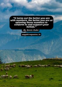 54) ”It turns out the better you are with numbers, the better you are at spinning those numbers to conform to and support your beliefs.”
