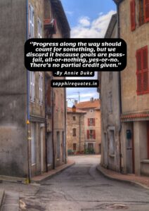 75) ”Progress along the way should count for something, but we discard it because goals are pass-fail, all-or-nothing, yes-or-no. There’s no partial credit given.”