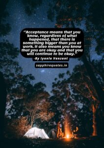 34) ”Acceptance means that you know, regardless of what happened, that there is something bigger than you at work. It also means you know that you are okay and that you will continue to be okay.”