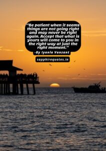 64) ”Be patient when it seems things are not going right and may never be right again. Accept that what is yours will come to you in the right way at just the right moment.”