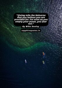 10) ”Giving tells the Universe that you believe you are provided for. For even as you empty your purse, you fear not. ”