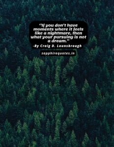 39)  ”If you don’t have moments where it feels like a nightmare, then what your pursuing is not a dream.”  -Craig D. Lounsbrough