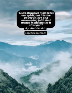 64)  ”Life’s struggles may break our spirit, but it is the power of love and unwavering faith that mends it and makes it stronger.”  – Atul Purohit