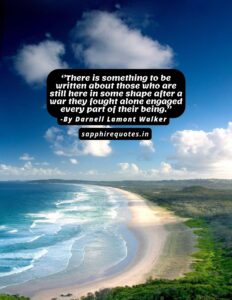68)  ”There is something to be written about those who are still here in some shape after a war they fought alone engaged every part of their being.”  – Darnell Lamont Walker