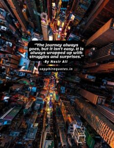 83)  ”The journey always goes, but it isn’t easy. It is always wrapped up with struggles and surprises.”  -Nasir Ali