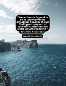 07)  ”Sometimes it is good to be in uncomfortable situations because it is in finding our way out of such difficulties that we learn valuable lessons.”  -Idowu Koyenikan