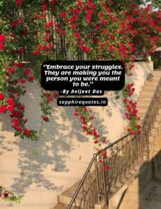92)  ”Embrace your struggles. They are making you the person you were meant to be.”  -Avijeet Das
