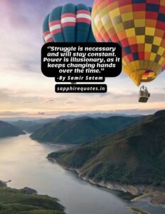 96)  ”Struggle is necessary and will stay constant. Power is illusionary, as it keeps changing hands over the time.”  – Samir Satam