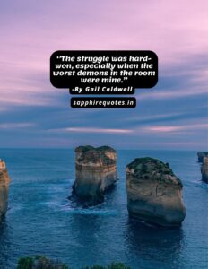 98)  ”The struggle was hard-won, especially when the worst demons in the room were mine.”  -Gail Caldwell