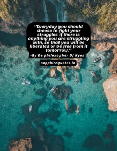 99)  ”Everyday you should choose to fight your struggles if there is anything you are struggling with, so that you will be liberated or be free from it tomorrow.”  -De philosopher DJ Kyos