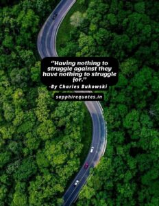 16)  ”Having nothing to struggle against they have nothing to struggle for.”  – Charles Bukowski