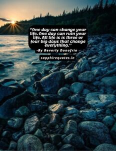 22)  ”One day can change your life. One day can ruin your life. All life is is three or four big days that change everything.”  -Beverly Donofrio