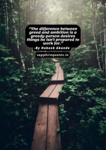 59) ”The difference between greed and ambition is a greedy person desires things he isn’t prepared to work for.” -Habeeb Akande