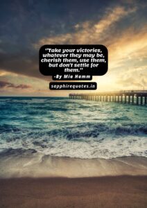 75) ”Take your victories, whatever they may be, cherish them, use them, but don’t settle for them.” -Mia Hamm