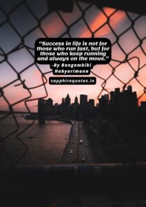 97) ”Success in life is not for those who run fast, but for those who keep running and always on the move.” –