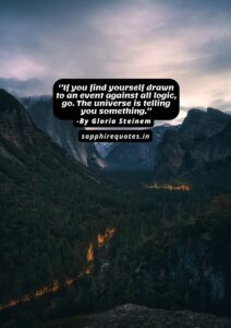 32) ”If you find yourself drawn to an event against all logic, go. The universe is telling you something.” -Gloria Steinem