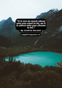 39) ”It is not as much about who you used to be, as it is about who you choose to be.” -Sanhita Baruah