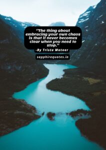51) ”The thing about embracing your own chaos is that it never becomes clear when you need to stop.” -Trista Mateer