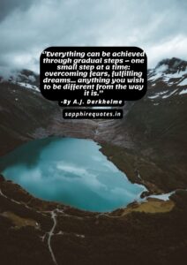 69) ”Everything can be achieved through gradual steps – one small step at a time: overcoming fears, fulfilling dreams… anything you wish to be different from the way it is.” -A.J. Darkholme