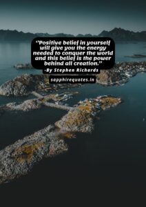 98) ”Positive belief in yourself will give you the energy needed to conquer the world and this belief is the power behind all creation.” -Stephen Richards