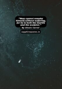 29) ”Man cannot remake himself without suffering, for he is both the marble and the sculptor.” –