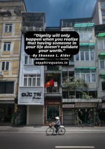 31) ”Dignity will only happen when you realize that having someone in your life doesn’t validate your worth.” -Shannon L. Alder