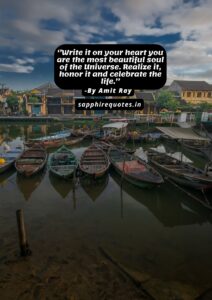 44) ”Write it on your heart you are the most beautiful soul of the Universe. Realize it, honor it and celebrate the life.” -Amit Ray