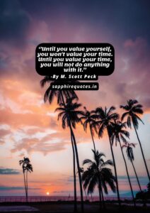 04) ”Until you value yourself, you won’t value your time. Until you value your time, you will not do anything with it.” -M. Scott Peck