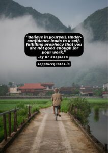 88) ”Believe in yourself. Under-confidence leads to a self-fulfilling prophecy that you are not good enough for your work.” -Dr Roopleen