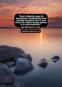 07) ”One’s dignity may be assaulted, vandalized and cruelly mocked, but it can never be taken away unless it is surrendered.” -Michael J. Fox