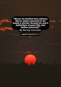 15) ”Never be bullied into silence. Never allow yourself to be made a victim. Accept no one’s definition of your life, but define yourself.” -Harvey Fierstein