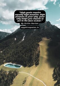 105) ”High goals require equally high purpose. High purpose is your why. Your why helps you choose to act in the face of fear.”