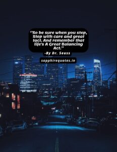 05)  ”So be sure when you step, Step with care and great tact. And remember that life’s A Great Balancing Act.”