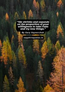 18) ”life shrinks and expands on the proportion of your willingness to take risks and try new things.”