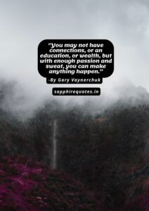 25) ”You may not have connections, or an education, or wealth, but with enough passion and sweat, you can make anything happen.”
