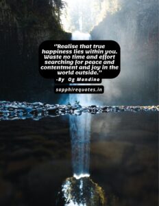 38) ”Realise that true happiness lies within you. Waste no time and effort searching for peace and contentment and joy in the world outside.”
