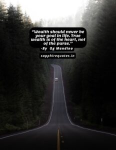 13) ”Wealth should never be your goal in life. True wealth is of the heart, not of the purse.”