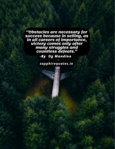 16) ”Obstacles are necessary for success because in selling, as in all careers of importance, victory comes only after many struggles and countless defeats.”