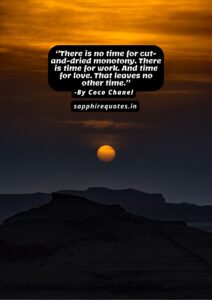 11) ”There is no time for cut-and-dried monotony. There is time for work. And time for love. That leaves no other time.”