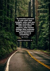 93) ”A creative person is one who has insight, who can see things nobody else has ever seen before, who hears things that nobody has heard before—then there is creativity.” -OSHO