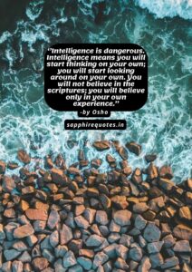 17) ”Intelligence is dangerous. Intelligence means you will start thinking on your own; you will start looking around on your own. You will not believe in the scriptures; you will believe only in your own experience.” -OSHO