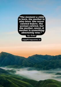 21) ”The moment a child is born, the mother is also born. She never existed before. The woman existed, but the mother, never. A mother is something absolutely new.” -OSHO