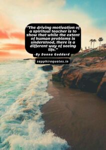 01) ”The driving motivation of a spiritual teacher is to show that while the extent of human problems is understood, there is a different way of seeing life.” -Donna Goddard