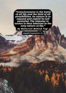 13) ”Consciousness is the basis of all life and the field of all possibilities. Its nature is to expand and unfold its full potential. The impulse to evolve is thus inherent in the very nature of life.” -Maharishi Mahesh Yogi
