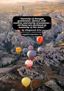 32) ”Serenity of thought, gentleness, silence, self-control, and purity of purpose—all these are declared as austerity of the mind. ” -Bhagavad Gita