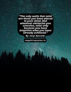 26) ”The only walls that exist are those you have placed in your mind. And whatever obstacles you conceive, exist only because you have forgotten what you have already achieved.”